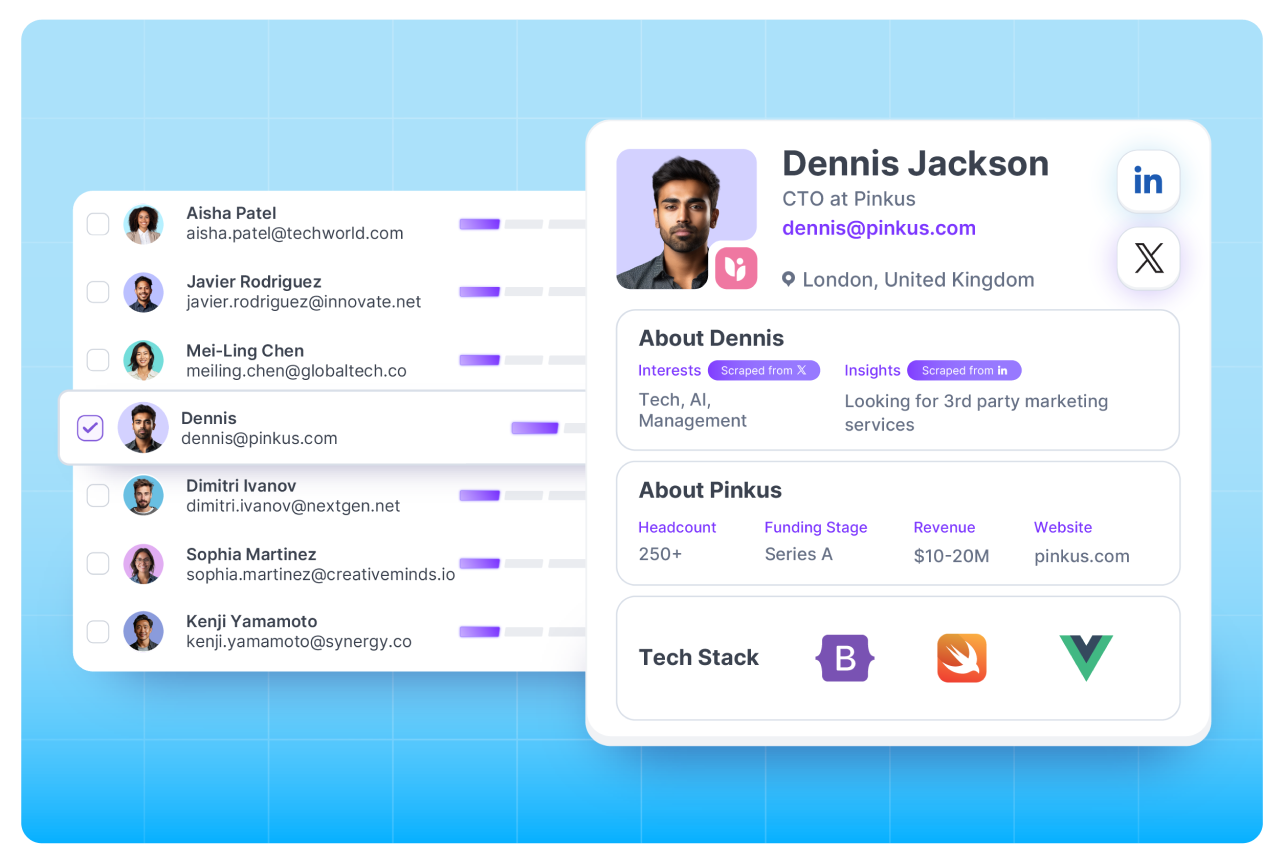 Automatically find B2B professional & e-commerce leads with over 300M contacts available.