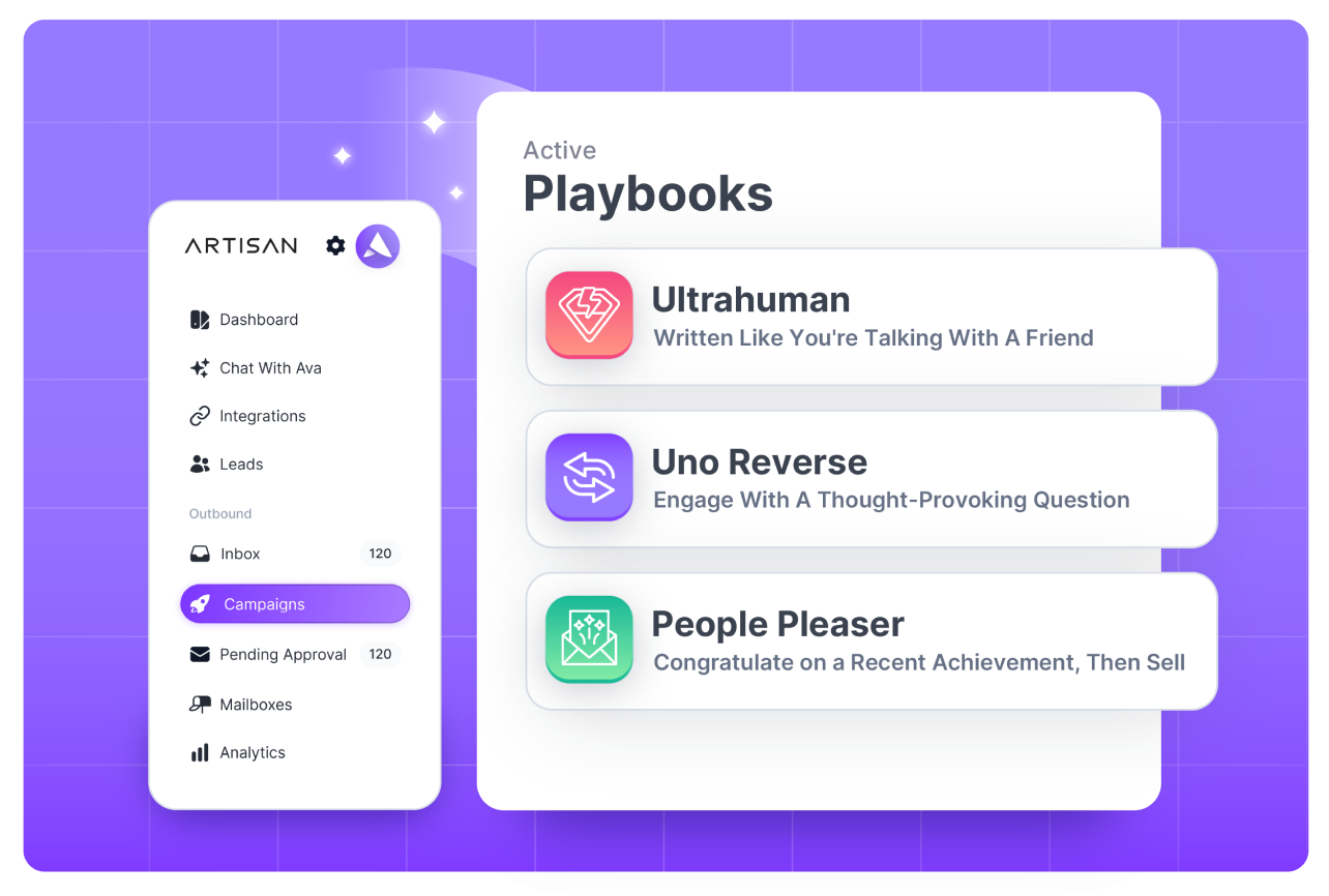 Artisan Sales, our AI-driven sales automation platform, and Ava, our Sales Artisan, work in symbiosis to automate more than 80% of your outbound sales tasks. We utilize cutting-edge AI to automate and streamline your sales process more effectively than any other platform.