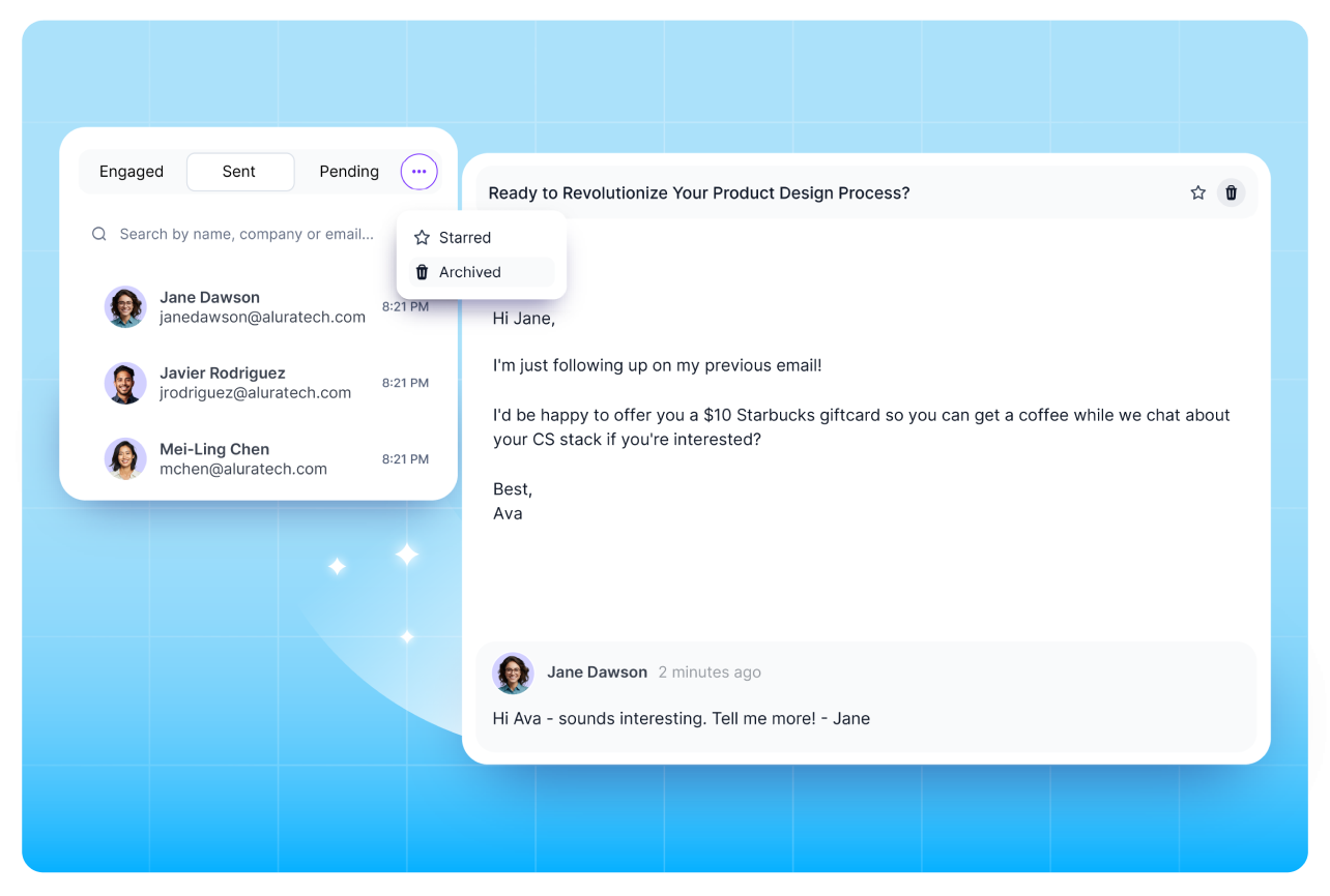 Ava isn't your average AI sales assistant. Not only does she automate tasks, she also learns from your feedback over time, just like a real human would.
